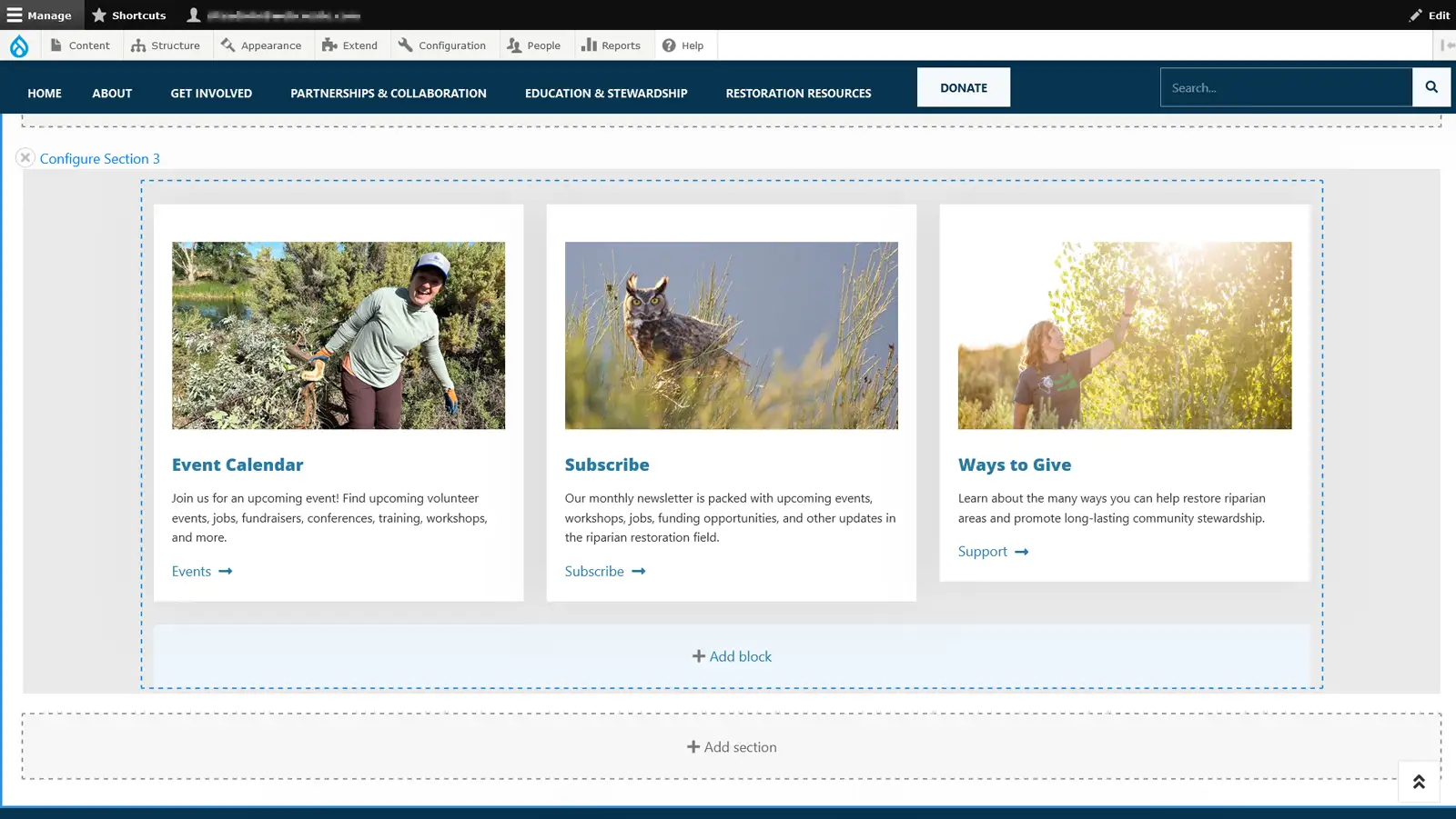- Transformed RiversEdge West's vision into a dynamic digital platform using Drupal, incorporating a theme equipped with the Layout Builder. This feature empowers RiversEdge West's staff to effortlessly design complex layouts using a simple drag-and-drop interface.